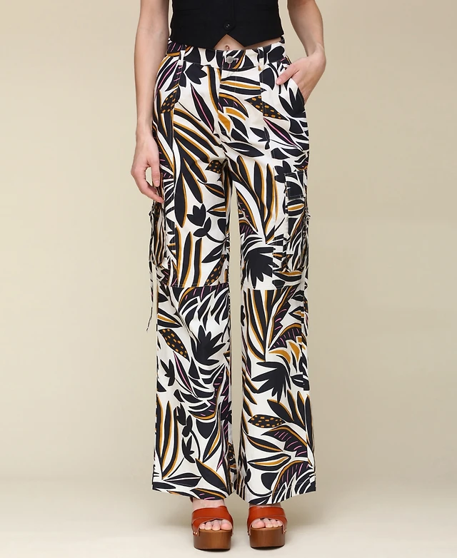Avec Les Filles Women's Printed Linen-Blend Cargo Pants
