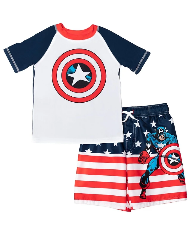 Avengers Boys Marvel Captain America Upf 50+ Rash Guard and Swim Trunks Outfit Set