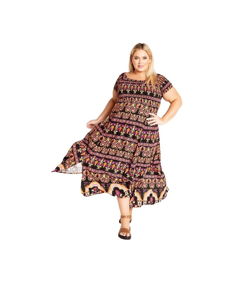 Make a statement in the Raelynn Border Dress, darling. With its elastic round neckline and short shirred sleeves, it's the epitome of laid-back glamour. The shirred, elasticated bodice and empire waistline accentuate your figure, while the relaxed skirt and maxi hemline with side split details add a touch of boho-chic charm. Fabric: 100% Viscose Care: Machine wash cold. Non-chlorine bleach. Do not tumble dry. Do not iron. Key Features Include: Elastic round neckline. Short shirred sleeves. Pull-over fit. Shirred, elasticated bodice. Empire waistline. Relaxed skirt. Maxi hemline with side split details.Avenue. Imported