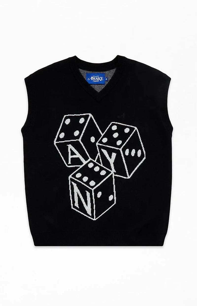 The Dice Sweater Vest from Awake NY brings a playful, street-ready twist to your layering game. Made from knit fabric with a V-neckline and ribbed trimming, it features a dice jacquard front graphic and subtle “A” embroidery for a bold, stylish statement.