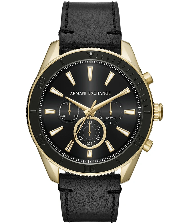 A|X Armani Exchange Men's Chronograph Black Leather Strap Watch 46mm