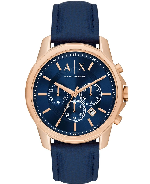 A|X Armani Exchange Men's Chronograph Blue Leather Strap Watch 44mm