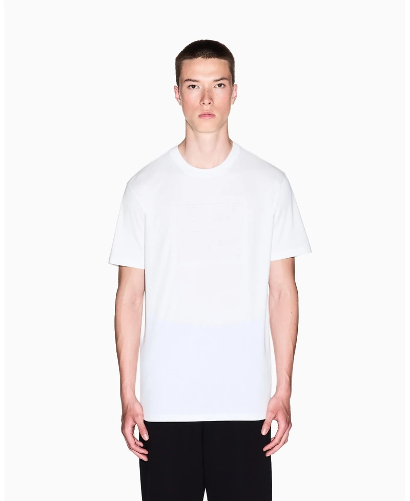 Add a touch of modern sophistication to your wardrobe with this crewneck t-shirt from Armani Exchange. Featuring a tonal textured grid box design with larger ""A"" and ""X"" letters, this shirt subtly showcases the iconic Armani Exchange branding. Perfect for any occasion, this stylish piece combines comfort and fashion effortlessly.