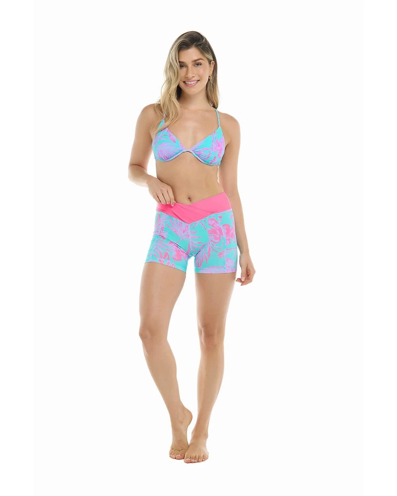 Features:- Awaken your wanderlust with Azores, a print that pulses with the rhythm of island life. Lush neon pink foliage unfurls over a serene aqua blue canvas, evoking sun-drenched shores and hidden lagoons. A dreamy fusion of boldness and tranquility, it captures the vibrant spirit and serene beauty of the Azores— where adventure meets paradise.- Introducing Patsy, the ultimate underwire top for all your beach adventures! This must-have bikini top features removable soft cups for customizable comfort and support. The two-way tie back ensures a secure fit while adding a flirty touch to your swimwear style.- Underwire top.- Removable soft cups.- 2-way ti e back.- Textured fabric.