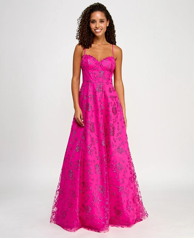 B Darlin Juniors' Floral Glitter Sweetheart Sleeveless Gown