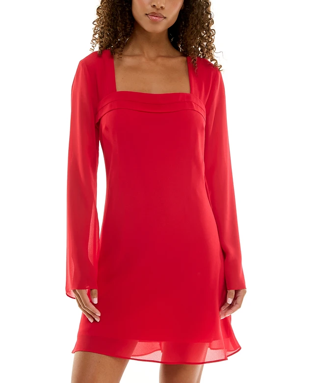 B Darlin Juniors' Ruffled Chiffon Long-Sleeve Dress