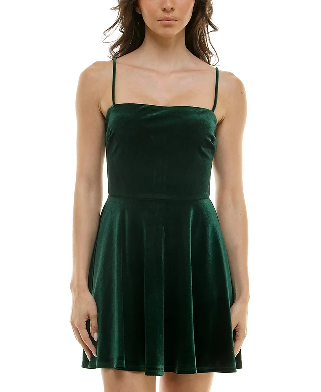 B Darlin Juniors' Straight-Neck A-Line Velvet Dress