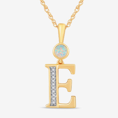T" Womens Lab Created White Opal 14K Gold Over Silver 18 Inch Pendant Necklace