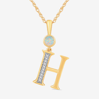 H Womens Lab Created White Opal 14K Gold Over Silver 18 Inch Pendant Necklace