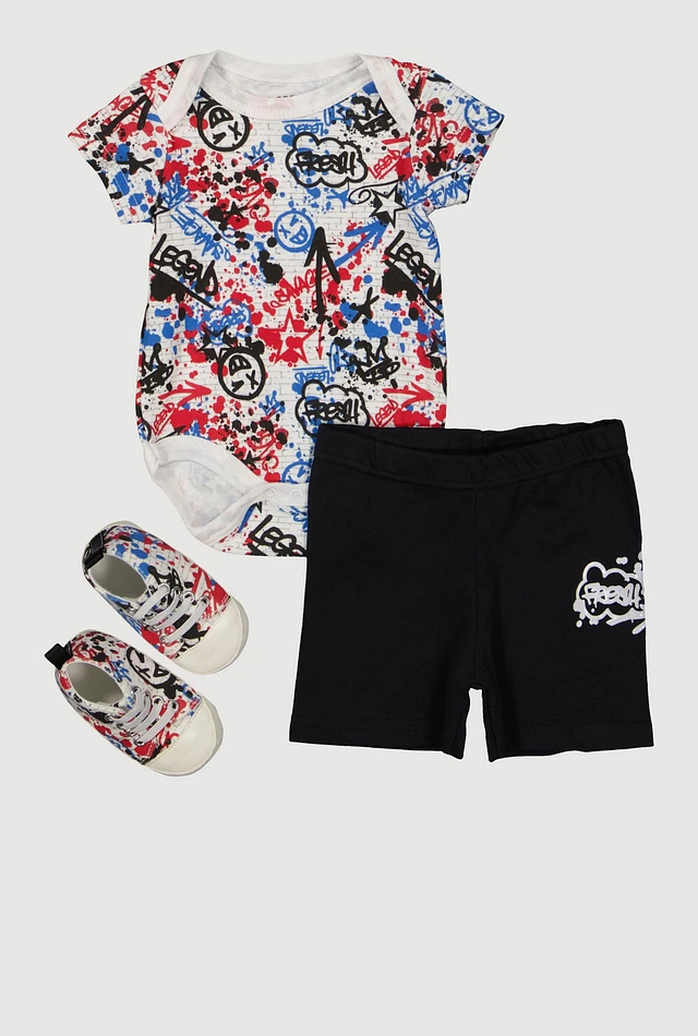 Baby Boys 0-9M Fresh Graffiti Print Bodysuit and Shorts with Shoes, Multi, Size 0-3M