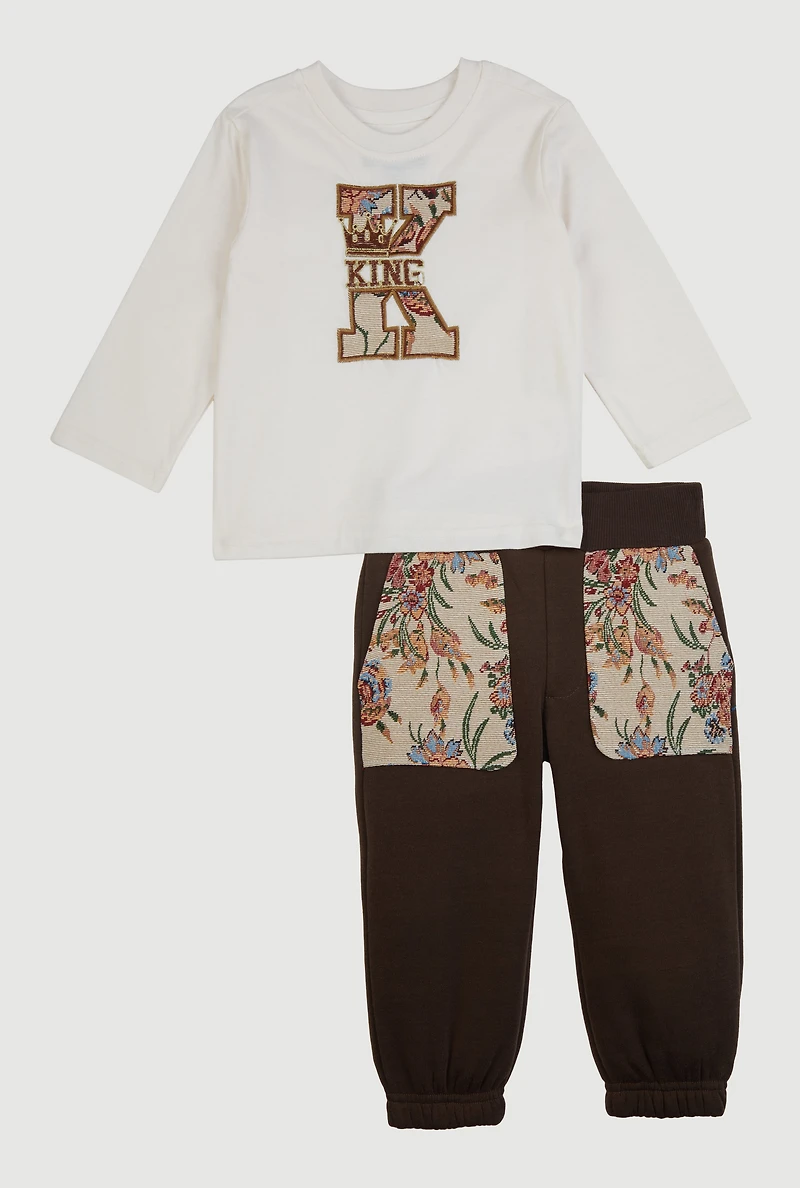 Baby Boys 12-24M King Graphic Tee and Sweatpants, Brown, Size 24M in Ponce, PR