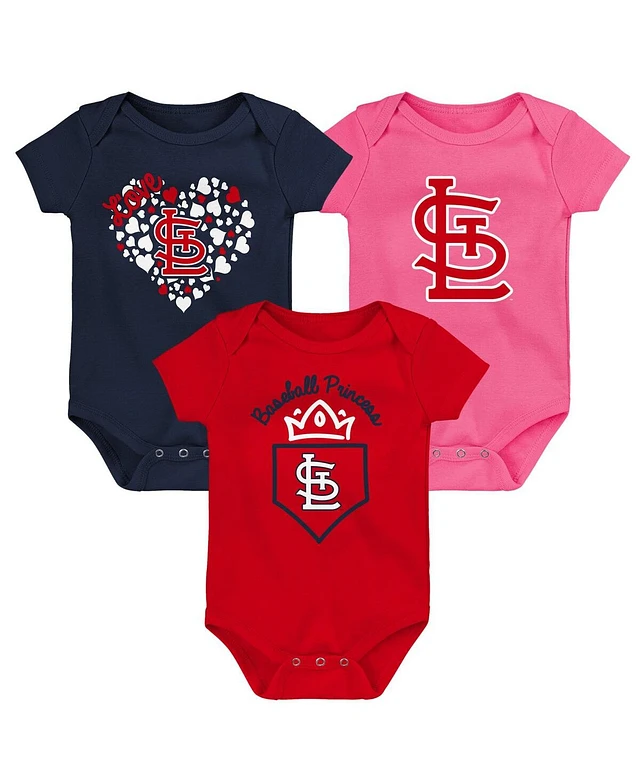 Infant Boys and Girls Red, Navy, Pink St. Louis Cardinals Baseball Baby 3-Pack Bodysuit Set