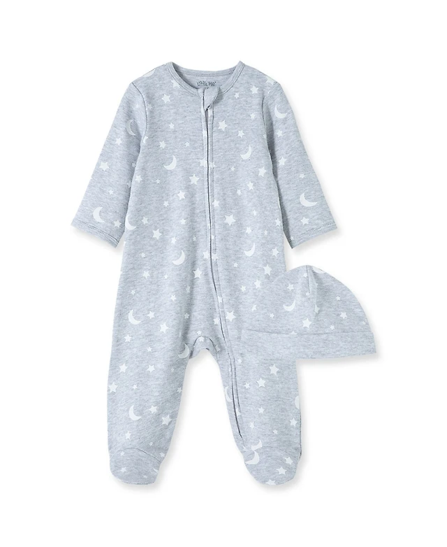 Baby Boys Moons and Stars Footed Coverall with Hat, 2 Piece Set
