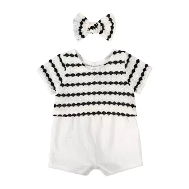 Baby Essentials Baby Girls Short Sleeve Striped 2-pc. Romper