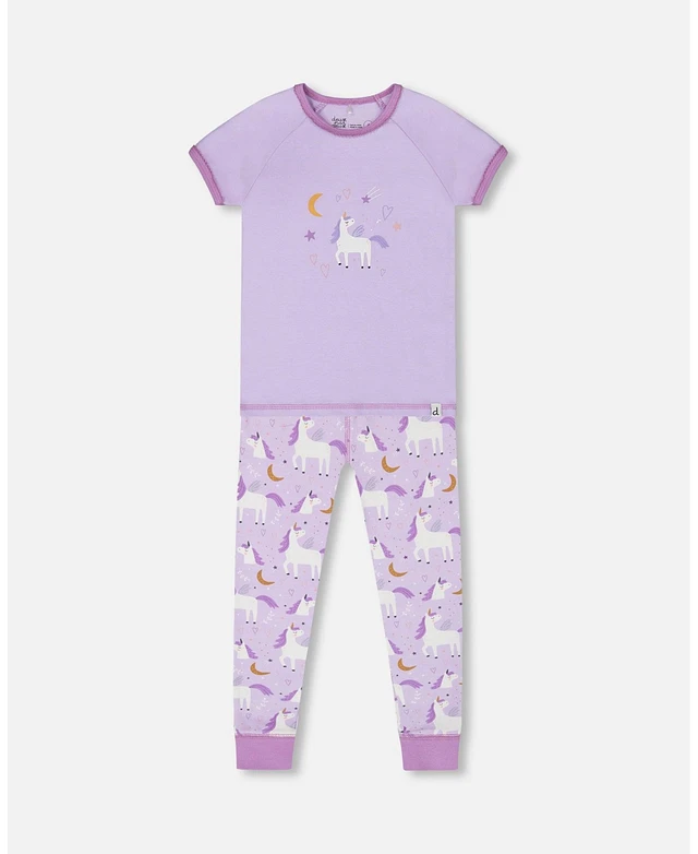 Baby Girl Cotton Short Sleeve Top And Pant Pajama Set White Unicorn On Mauve - Infant