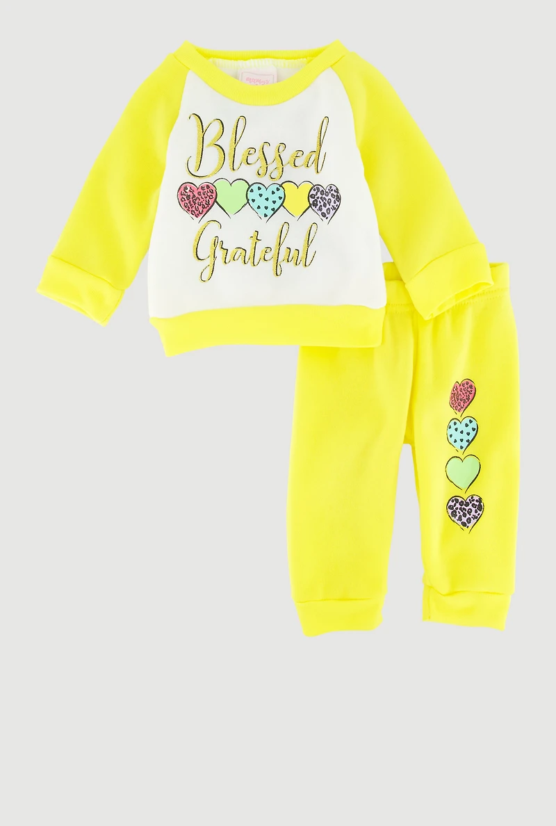 Baby Girls 0-9M Color Blocked Blessed Grateful Graphic Sweatshirt and Sweatpants