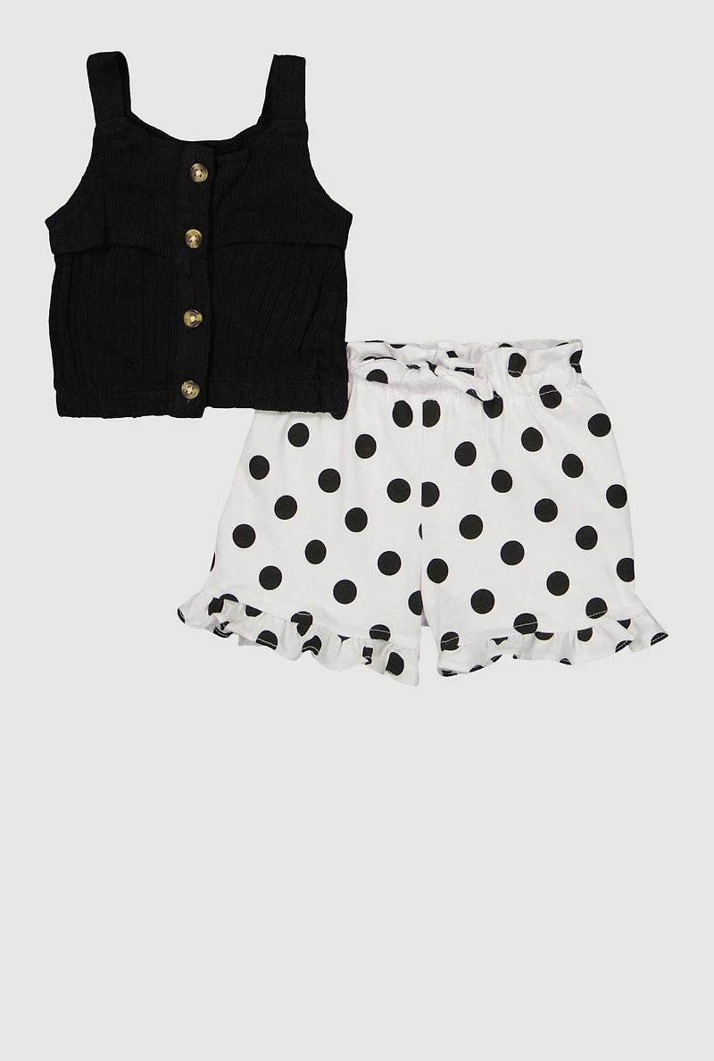 Baby Girls 12-24M Button Front Tank Top and Polka Dot Shorts