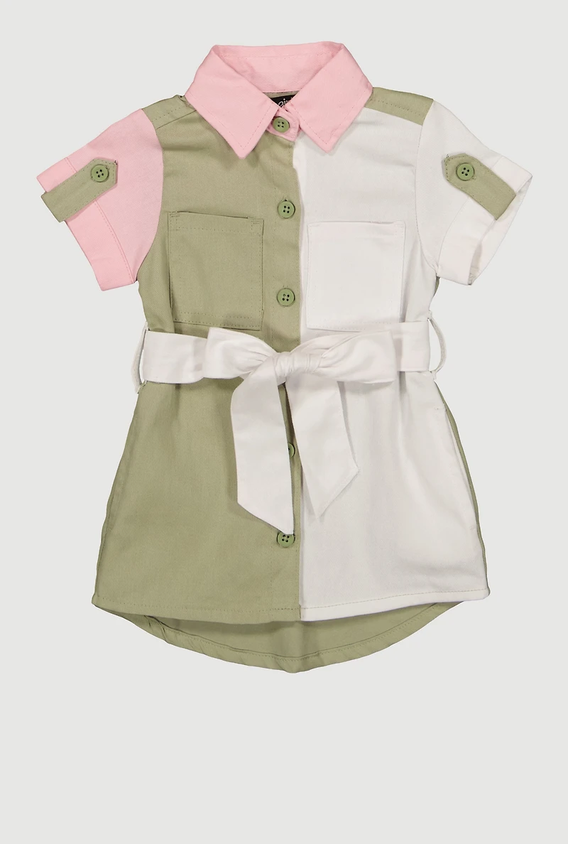 Baby Girls 12-24M Color Block Twill Shirt Dress