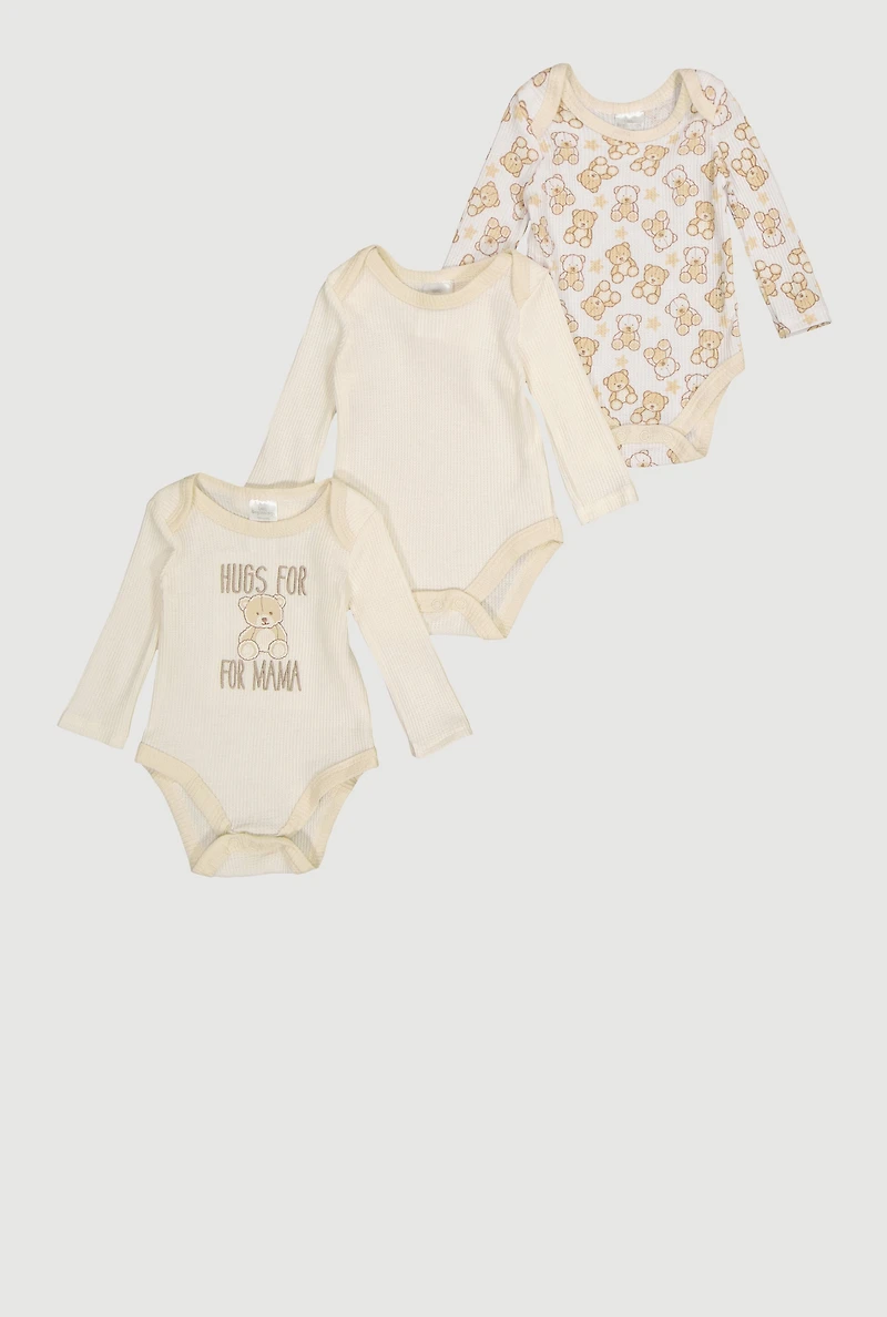 Baby Hugs For Mama Teddy Bear Print Bodysuits 3 Pack