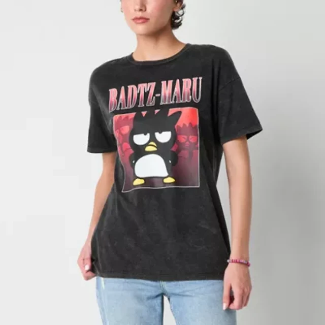 Badtz-Maru Boyfriend Tee Womens Juniors Crew Neck Short Sleeve Regular Fit Hello Kitty Graphic T-Shirt