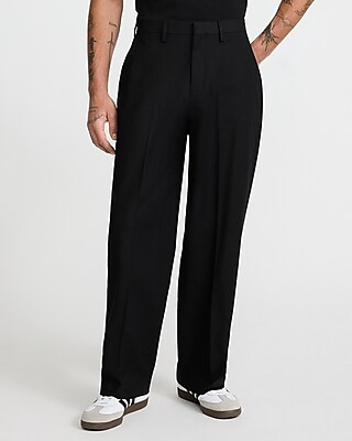 Baggy Black Linen-Blend Dress Pant