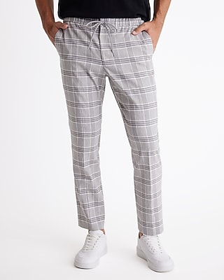 Slim Plaid Linen-Blend Drawstring Dress Pant