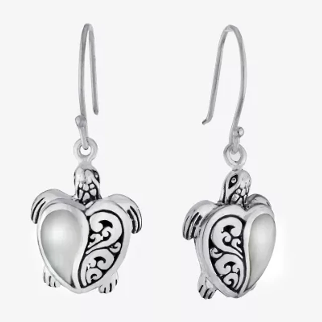 Bali Inspired Womens Genuine White Mother Of Pearl Sterling Silver Drop Earrings