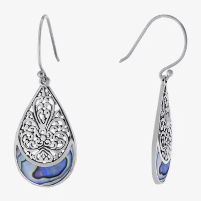 Bali Inspired Womens Gray Abalone Sterling Silver Drop Earrings