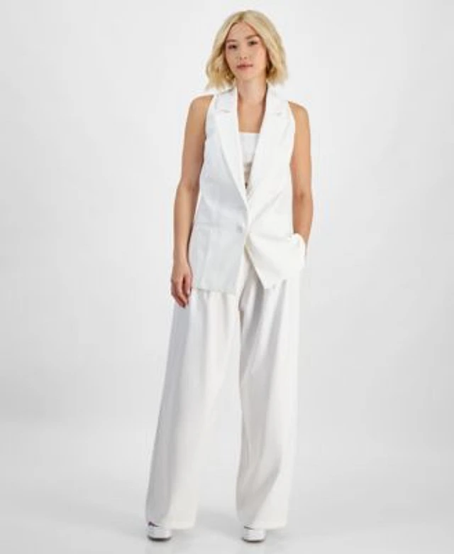 Bar Iii Petite Button Front Sleeveless Blazer Wide Leg Pants Created For Macys