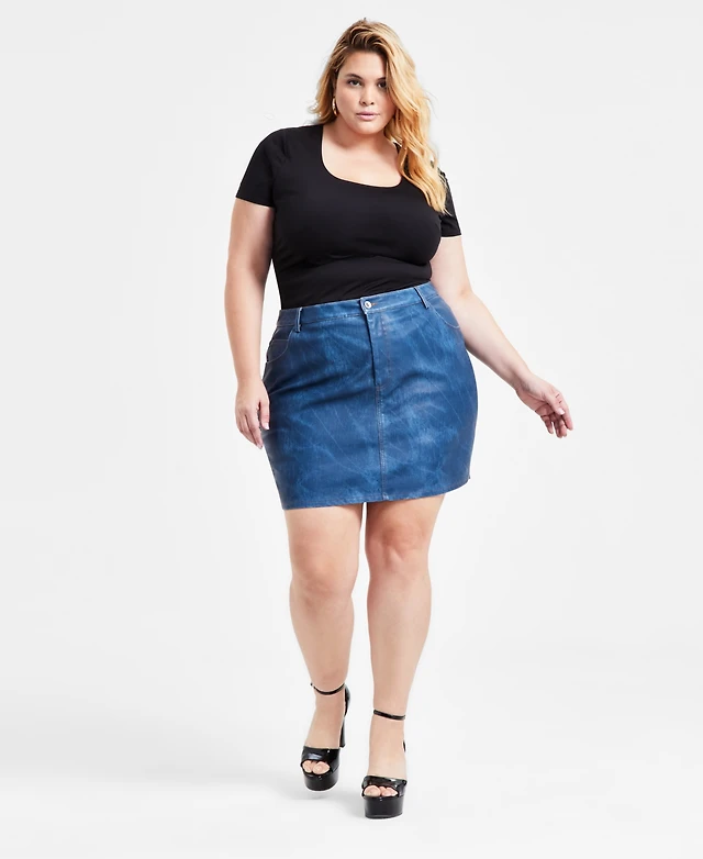 Bar Iii Trendy Plus Denim Faux-Leather Mini Skirt, Exclusively at Macy's