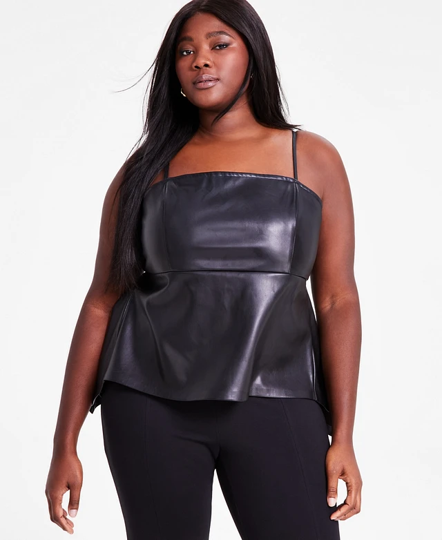 Bar Iii Trendy Plus Faux-Leather Peplum Top, Exclusively at Macy's