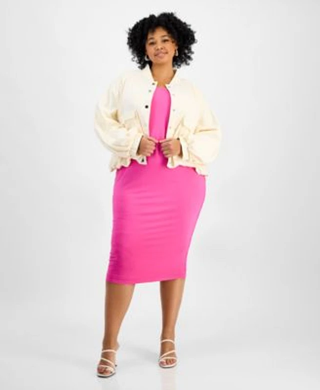Bar Iii Trendy Plus Size Cargo Jacket Bodycon Dress Exclusively At Macys