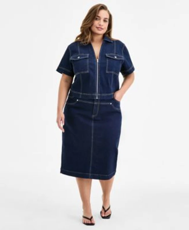 Bar Iii Trendy Plus Size Denim Pocket Top Midi Skirt Exclusively At Macys