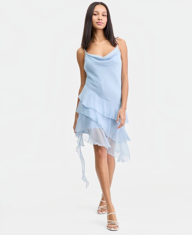 Bar Iii Women's Cowl-neck Ruffled Mini Dress, Macy's Exclusive