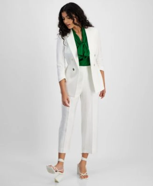 Bar Iii Womens Faux Double Breasted Jacket Satin Bow Blouse Pull On Pants Created For Macys