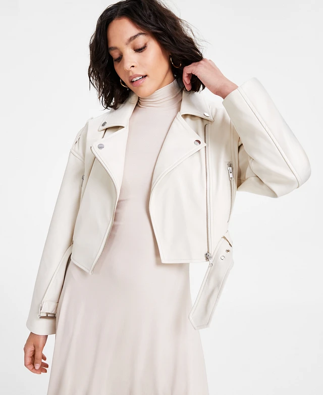 Bar Iii Women's Faux-Leather Long-Sleeve Moto Jacket, Exclusively at Macy's