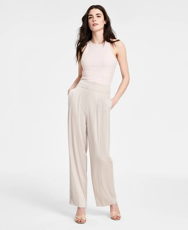 Bar Iii Women's High-Rise Pleat-Front Wide-Leg Pants, Macy's Exclusive