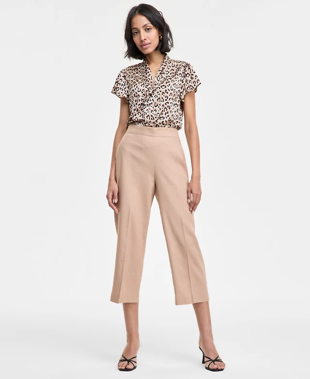Bar Iii Women's Linen-Blend Pull-On Cropped Wide-Leg Pants, Exclusively at Macy's