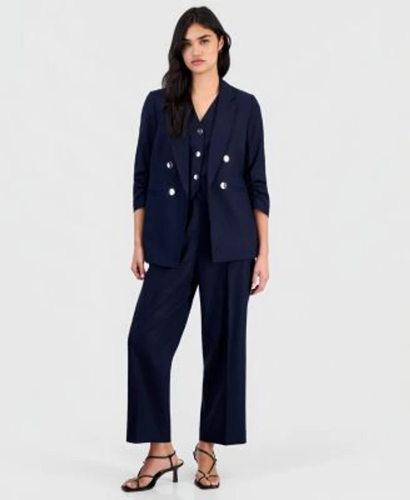 Bar Iii Womens Linen Blend Scrunch Sleeve Blazer Button Front Vest Pull On Pants Macys Exclusive