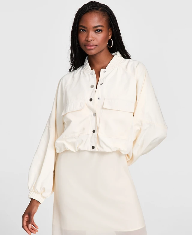 Bar Iii Women's Long-Sleeve Bubble-Hem Cargo Jacket, Exclusively at Macy's