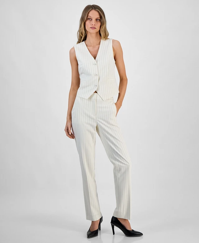 Bar Iii Women's Pinstriped Straight-Leg Pants, Exclusively at Macy's