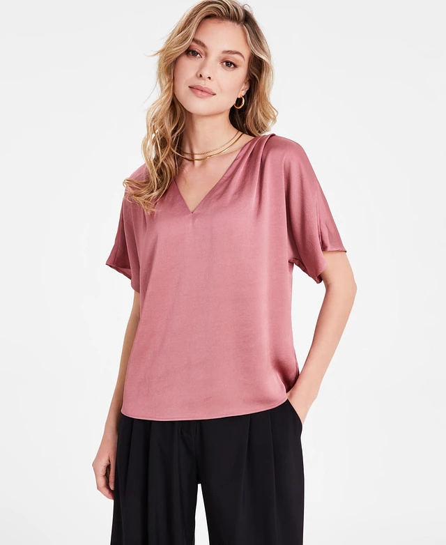 Bar Iii Women's Satin V-Neck Blouse, Exclusively at Macy's