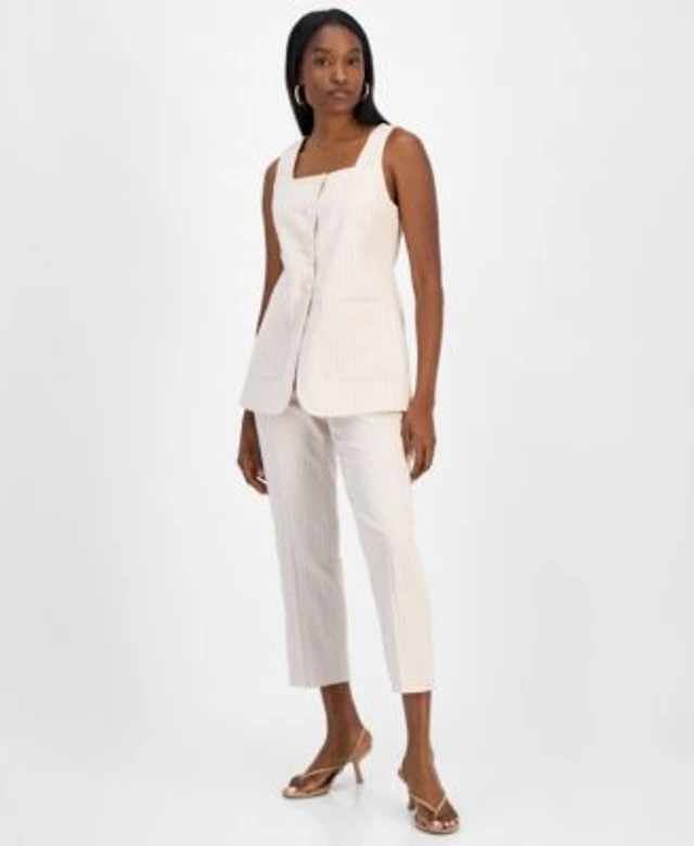 Bar Iii Womens Striped Straight Leg Pants Square Neck Vest Exclusively At Macys