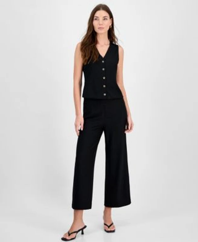 Bar Iii Womens Textured Knit Button Front Vest Cropped Pull On Pants Exclusively At Macys