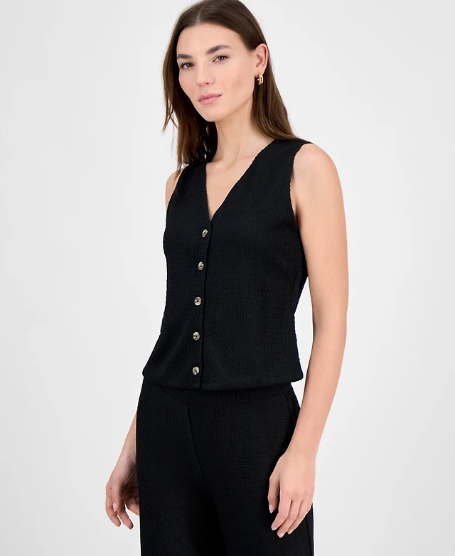 Bar Iii Women's Textured Knit V-Neck Button-Front Vest, Exclusively at Macy's