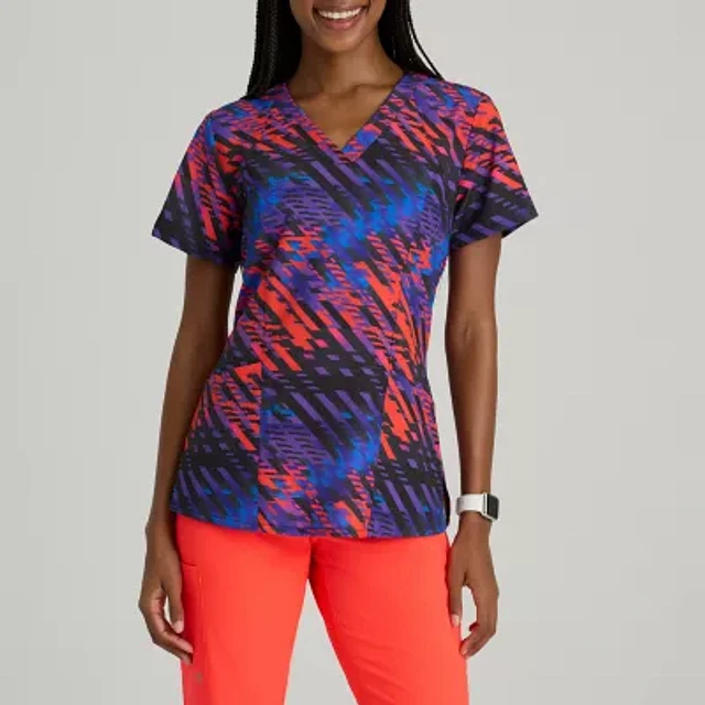 Barco One 5107 Thrive 4-Pocket Print Womens Plus Tall V Neck Short Sleeve Moisture Wicking Scrub Top