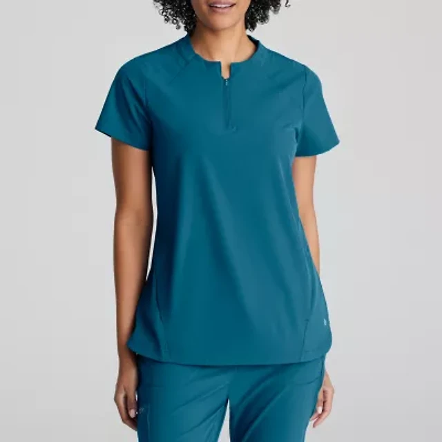 Barco One Bot216 Flux 2-Pocket Banded Zip Collar Womens High Neck Short Sleeve Wrinkle Resistant Scrub Top