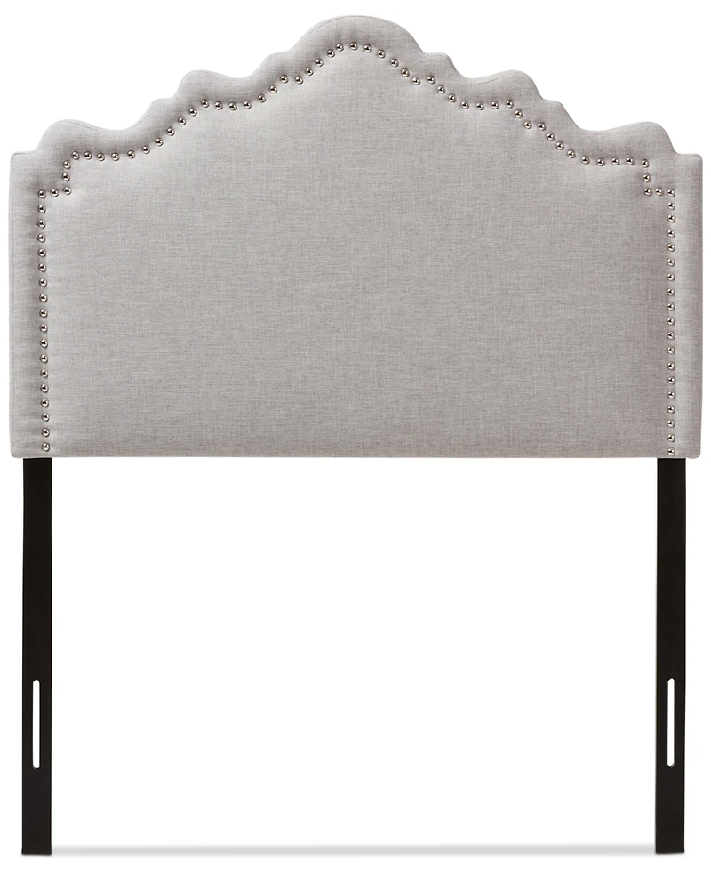 Complete your bedroom with the charming beauty of this easy to install twin headboard. Silver-tone nailhead trim lines its graceful curved top, accentuating its elegant look while soft upholstery and plush padding offer comfort.