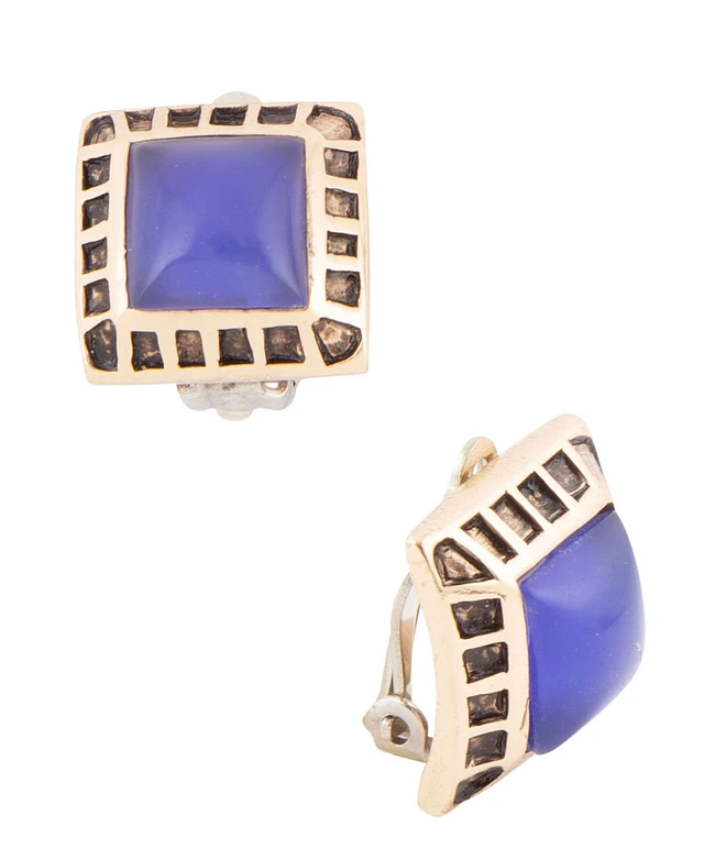 Barse Blue Agate Golden Square Clip Earrings