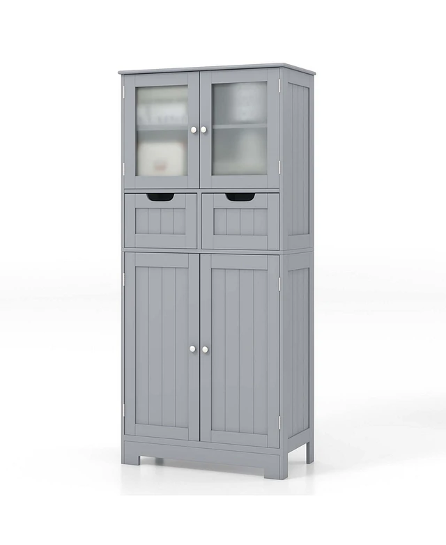 4 Door Freestanding Bathroom Floor Storage Cabinet with 2 Drawers and Glass Doors